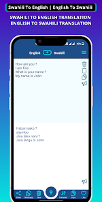 De Swahili - English Translator is een veelzijdige app die gebruikers in staat stelt om snel woorden, zinnen en hele teksten van het Swahili naar het Engels en vice versa te vertalen. Met een gebruiksvriendelijke interface en krachtige functies zoals spraak naar tekst, kunnen gebruikers eenvoudig communiceren in beide talen. De app biedt ook een leer module die interactieve lessen bevat voor het verbeteren van de taalkennis, ideaal voor zowel beginners als gevorderden.